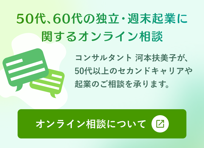 50代〜定年後の起業・独立に少しでも興味のある方へ。ご相談の多いお悩みへの回答や、実際に起業された方の事例など、起業・独立に役立つ情報をお届けいたします。