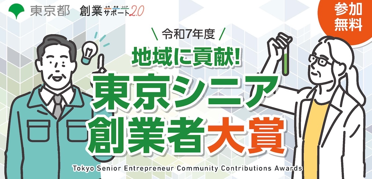 本イベントでは、この事業を活用し、地域で活躍する、優れたシニア創業者を表彰する「東京シニア創業者大賞」表彰式を開催します。